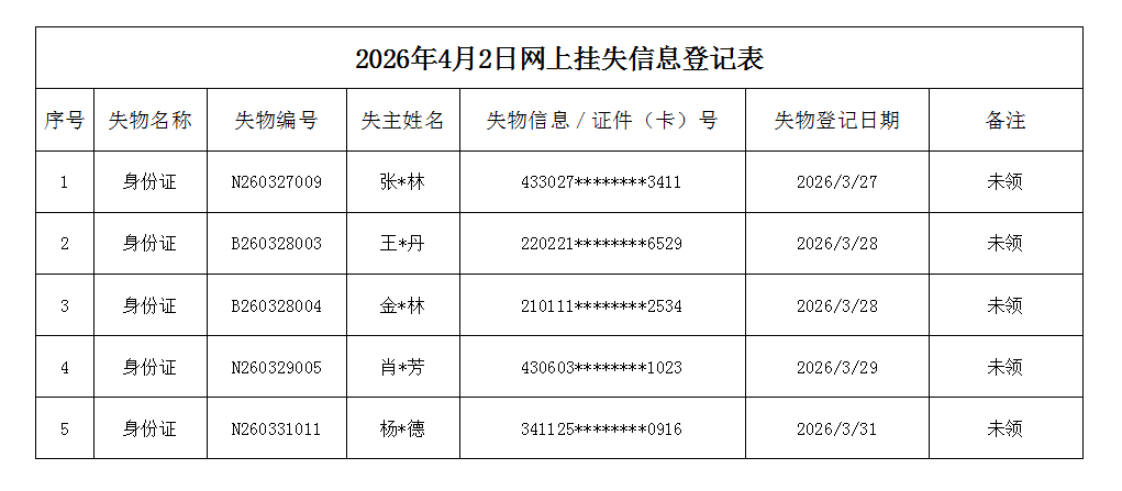 2.物品类:通过认领人对遗失物品的描述,核对无误后由失主本人(或委托代领人)持身份证登记领取。