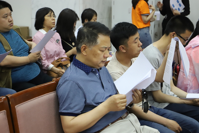 为减少报名者等候时间,本次面试采用分组分时段考核方式,共分5组同时进行。每组评审由相关部门领导、专职讲解员、志愿者组成,对报名者志愿经历、知识背景、外在形象和内在气质、普通话水平等方面进行综合评审。