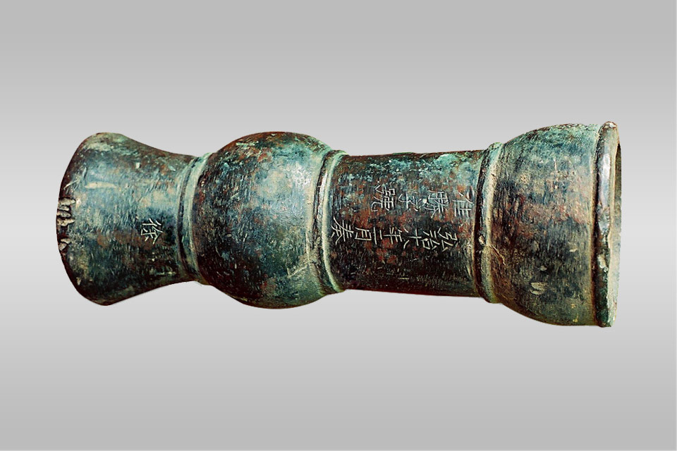口径较大,体形短粗,铳口呈碗状,铳身有铭文“弘治十八年二月奏准胜字号”“徐”。碗口铳 主要是装备水军进行水上作战使用的。
