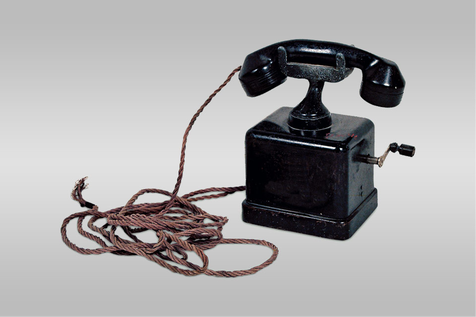 这部由美国芝加哥电器公司 1945 年生产的手摇式电话机,原为美国支持国民党发动内战的工具,后被人民解放军在战斗中缴获,交由华东野战军司令员粟裕在淮海战役中使用。粟裕1907年生于湖南会同,1927 年加入中国共产党,解放战争期间任中共苏中区委书记,1948 年 9 月,时任华东野战军代司令兼代政治委员的粟裕,向中央提出进行淮海战役的建议,得到中央批准。同年 11 月,华东野战军和中原野战军在华东、中原军区及冀鲁豫部队配合下,历时 65 天,歼灭国民党军 55.5 万人。这部电话机是粟裕在淮海战役中调度千军万马的主要通讯工具。