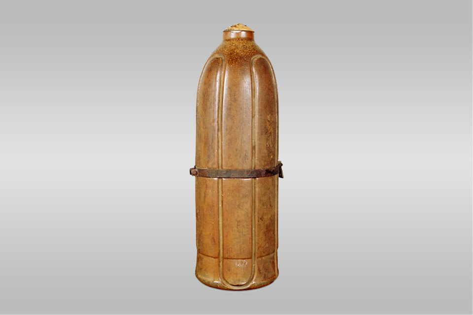这件瓷质细菌炸弹是日军在中国战场上使用的,由飞机运载和空投。第二次世界大战中,研究生物武器的国家增加,战剂种类增多,生产规模扩大,经常使用飞机投放带菌媒介物,以扩大攻击范围。抗战期间,日军在中国东北地区建立生物武器工厂,在南京、广州设立研究机构,先后在湖南、浙江、内蒙古、山东等地使用细菌武器,造成鼠疫流行,中国军民因此死亡上千人。